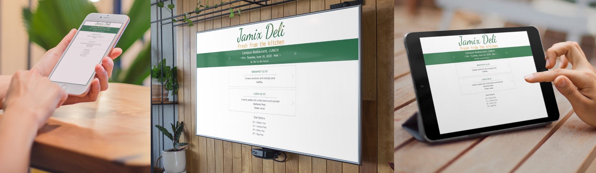 Ruokalistasuunnittelu on yksi JAMIX-järjestelmän avaintoiminnoista ja se linkittyy järjestelmässä saumattomasti keittiön käyttämiin resepteihin ja niiden sisältämiin ruoka-aineisiin. Sama ruokalista, joka on luotu järjestelmään keittiön sisäisen toiminnan ja tuotannon ohjausta varten, voidaan julkaista parilla klikkauksella asiakkaille sopivassa muodossa valittuihin sähköisiin kanaviin.